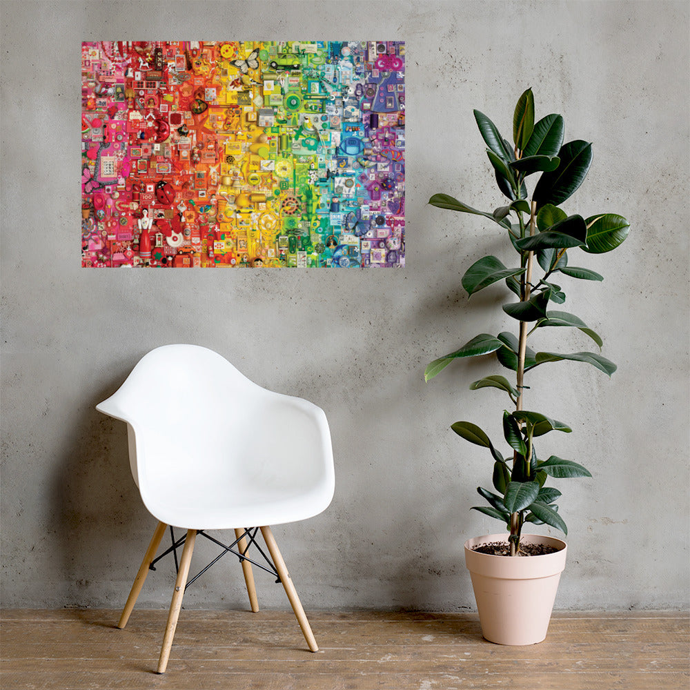 A final follow-up to the famous rainbow series, this is a very colourful poster that features many of the most popular components from the seven individual colour creations. This entertaining poster can be framed or simply hung with poster brackets (not supplied) and will provide hours of fun, looking for those special Shelley Davies hidden treats.