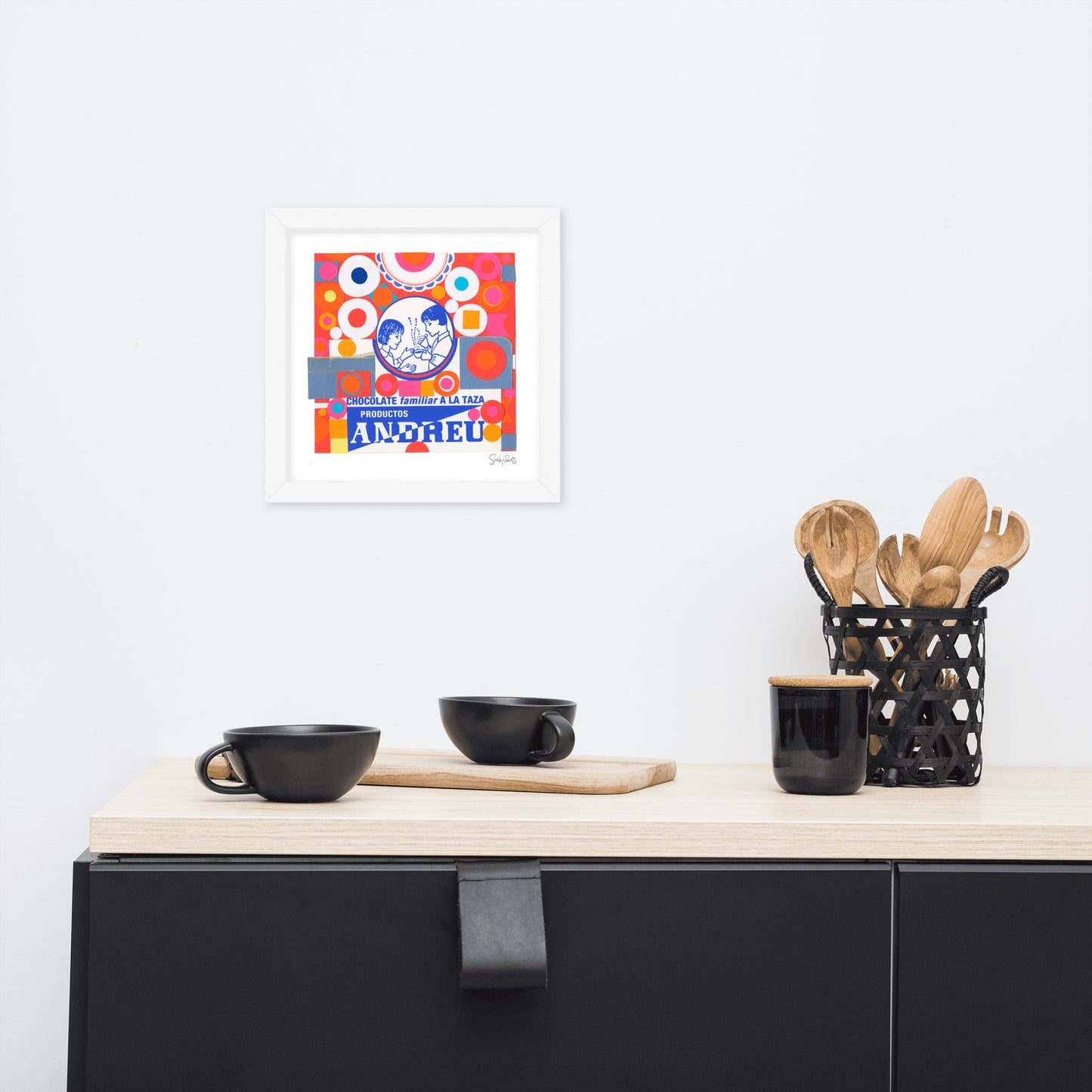 This small but vibrant paper collage was inspired by a 1970s era display box for Andreu chocolate, a beloved drinking confection with Spanish children to this day, found in shops and bakeries around the country. I created a bold 70s vibe with the cut-out papers and vintage colour scheme, enhancing the typography and retro illustration.