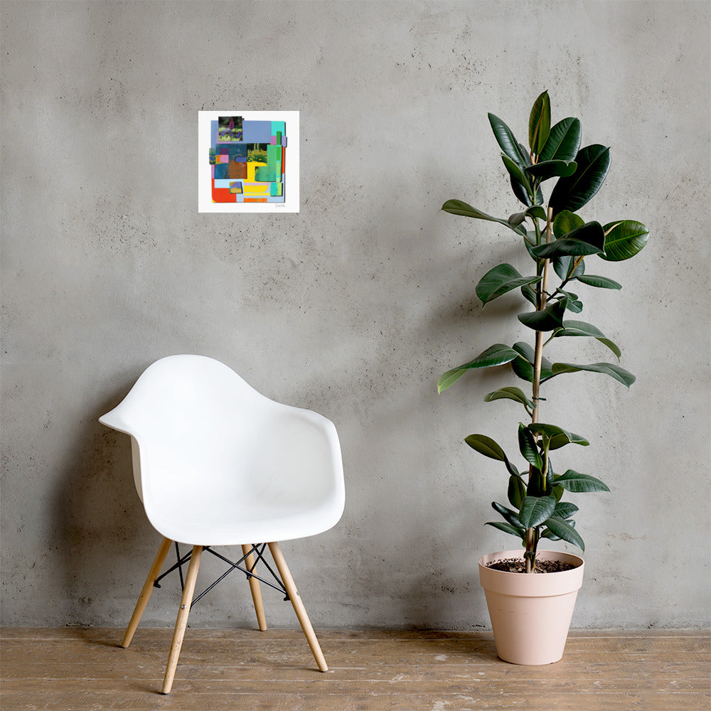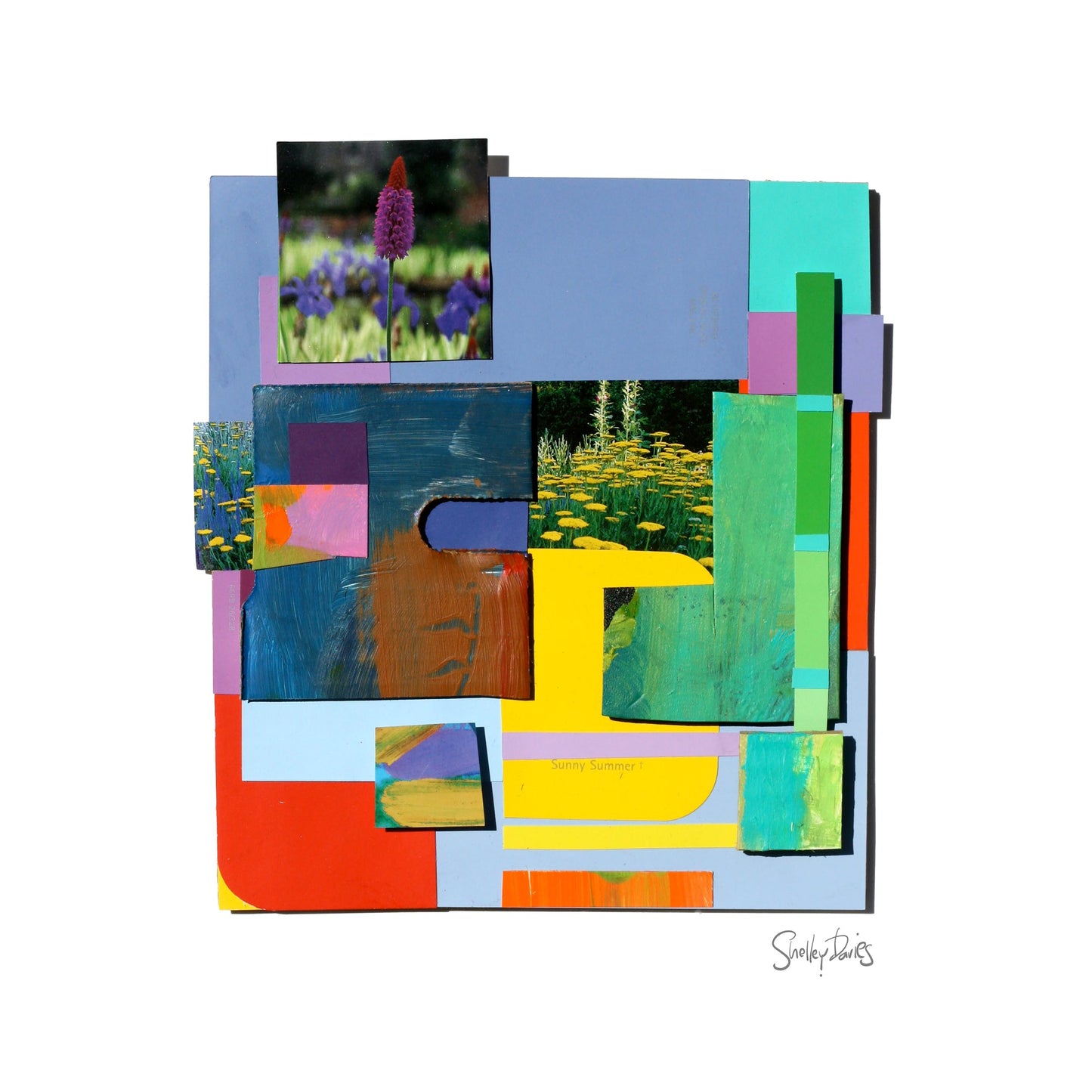 'Bluebird' takes its name from the colour of the paint chip used at the top of this composition. With tiny pieces of paint palettes and yet more paint chips, and a few vibrant images of voluptuous gardens at their peek, here's the exuberant rhythm of summer, in collage form.