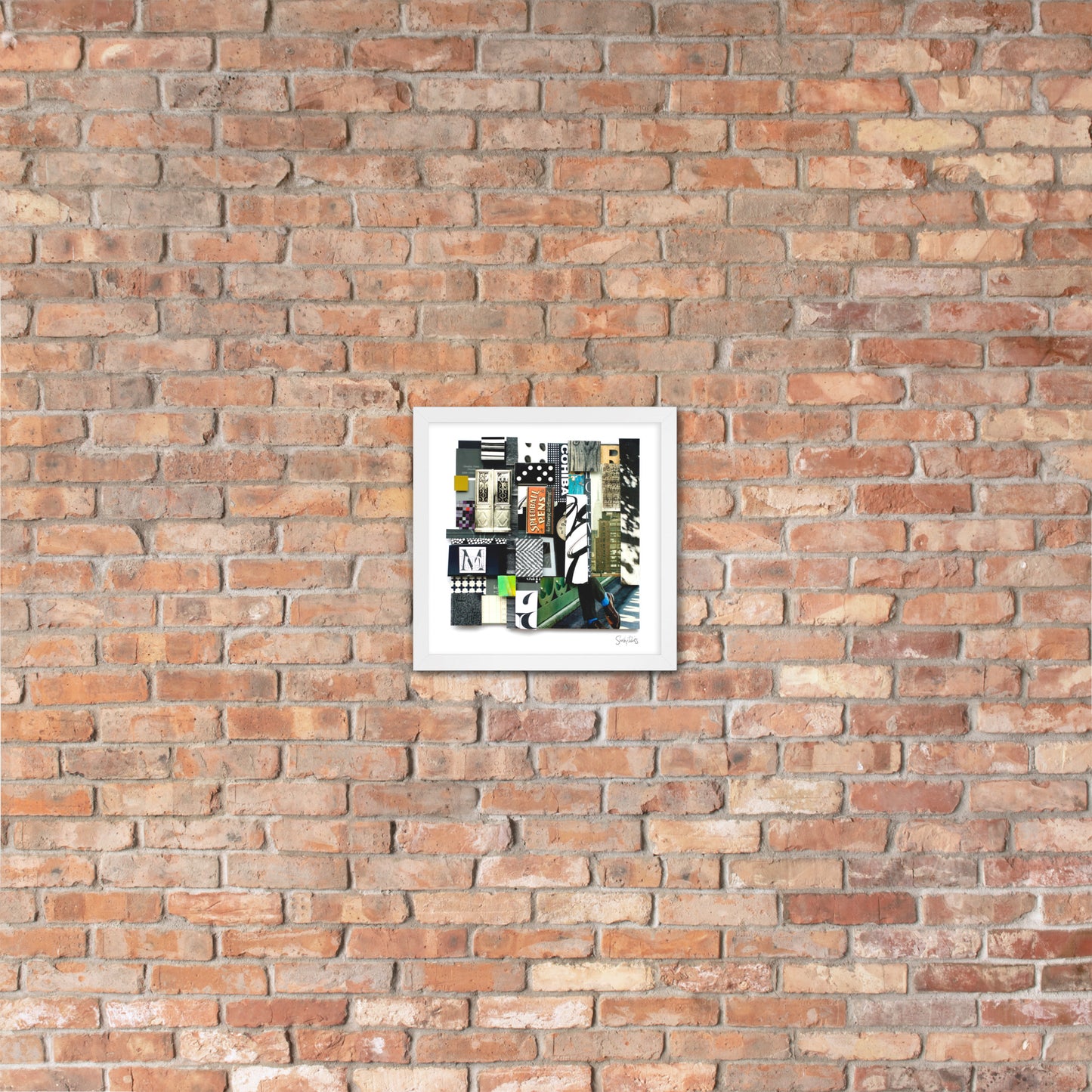 These are handmade, living pieces, many with overhanging elements from the collage assembly and the pieces are mounted in a slightly raised fashion (so as to appear floating) above a white, acid-free matte. We use Museum Glass, specially coated to make the viewing of the art completely glare and reflection-free (it looks like there is no glass; all you see is the artwork), as well as being 92% UV filtering (a very important feature, due to the use of fragile, paper ephemera).