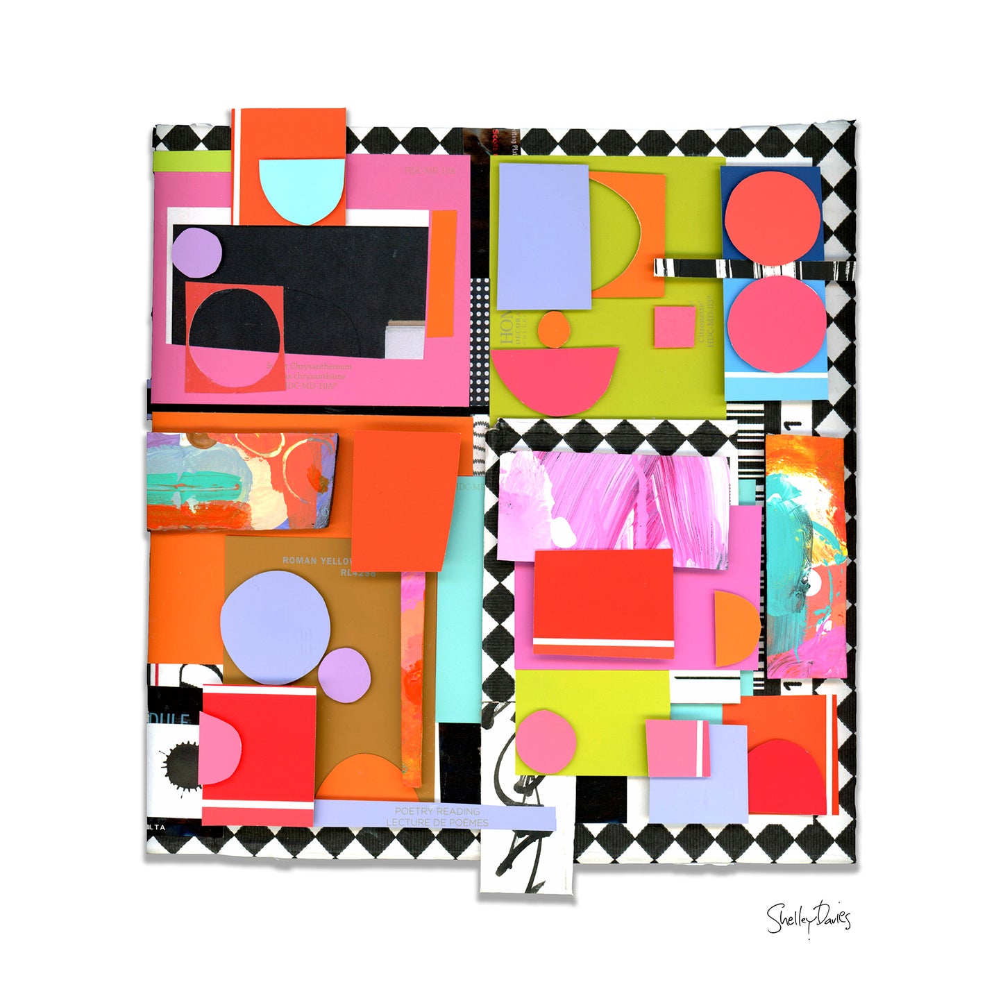 This is a slightly larger piece than the other Harlequin pieces, but still just 9" x 9. As with the others there is a lot of depth to this collage, including portions of my many paint trays.