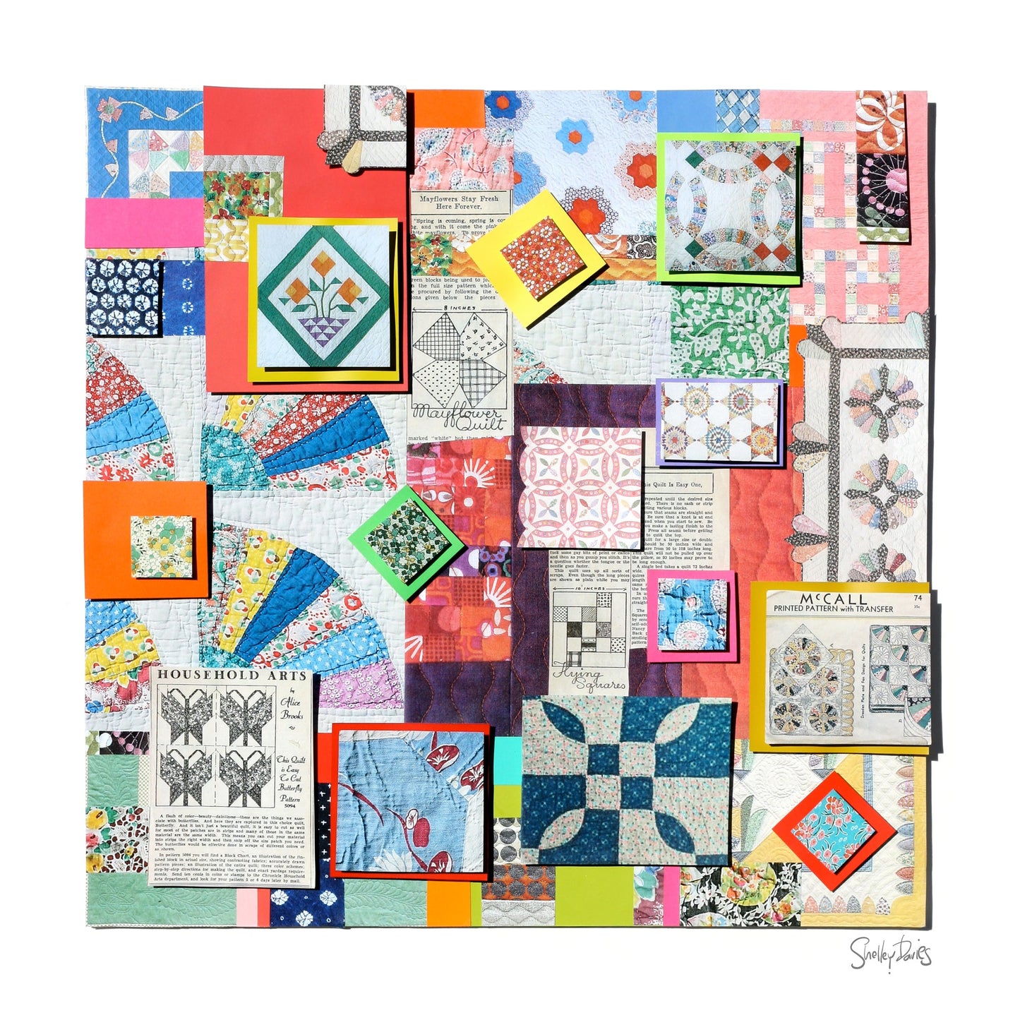 "Ode to the quilt, and the numerous hands of women who have created them. I photocopied family quilts made in the 1920's from children's dresses, all evocatively faded and worn to perfection, with life stories lovingly sewn into each one. With numerous quilt designs included within, the published newspaper patterns of 'Mayflower' illustrate how essential and ubiquitous quilts were, once upon a time."