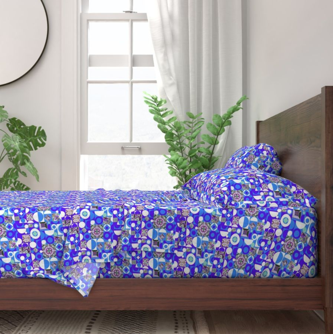 Starting in mid 2023, we began a project to offer many of Shelley's creations as fabric and home decor. Converting her 3-dimensional paper collages into repeat patterns has been a fabulously creative exercise, and in many cases she has also selected different colour palates to give the customer even more choices for interior design. She has even created complementary patterns for some pieces. Follow the links to Spoonflower, who manufacture all of these products for Shelley, and ship your selections directly to you.
